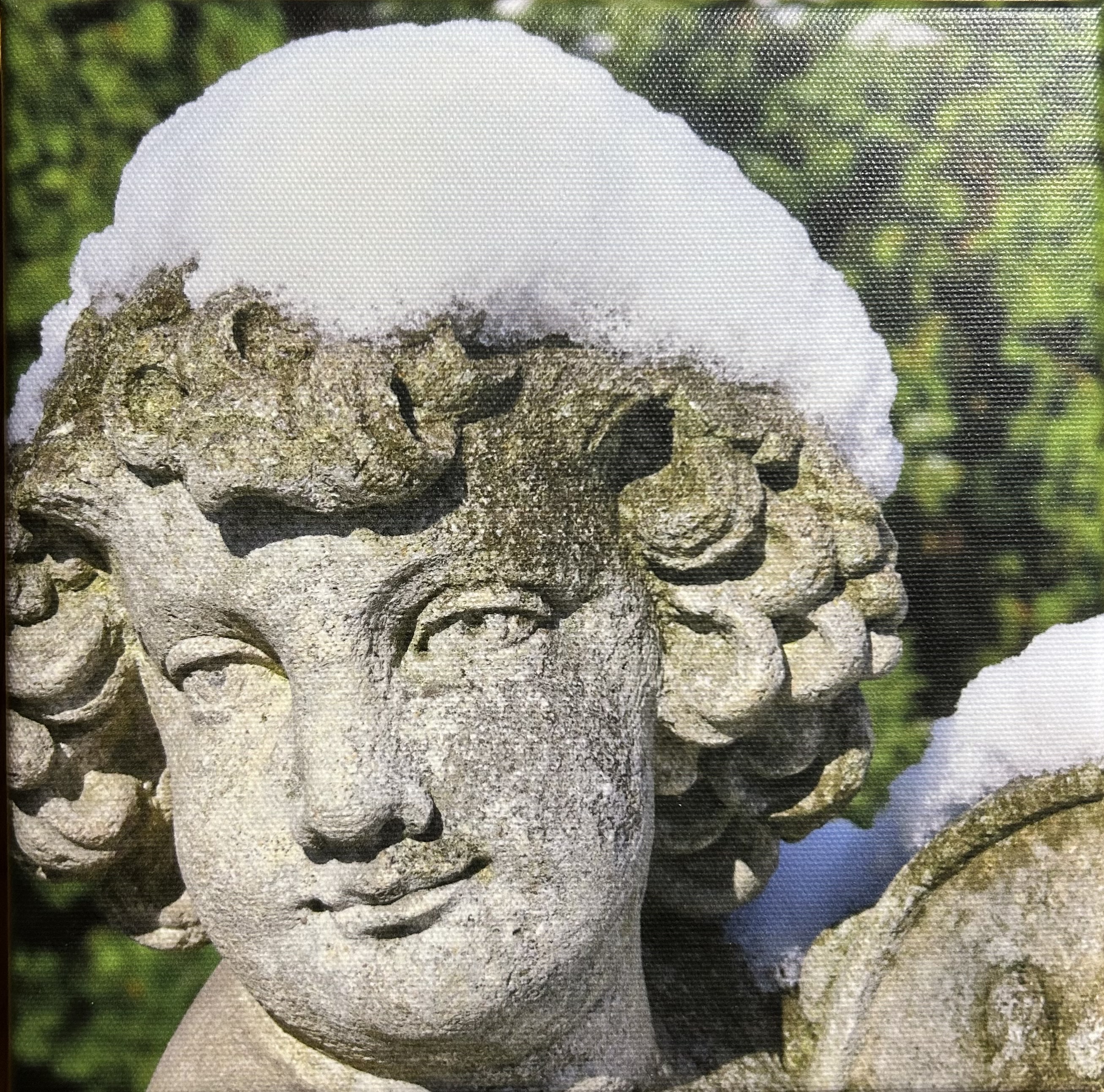 Frau Dr. Christoph ist die Schulleiterin des Gymnasiums Puchheim. Sie hat uns eine Fotoleinwand mit dem Abbild eines Engels mit Schneehaube aus ihrem Garten zur Verfügung gestellt.