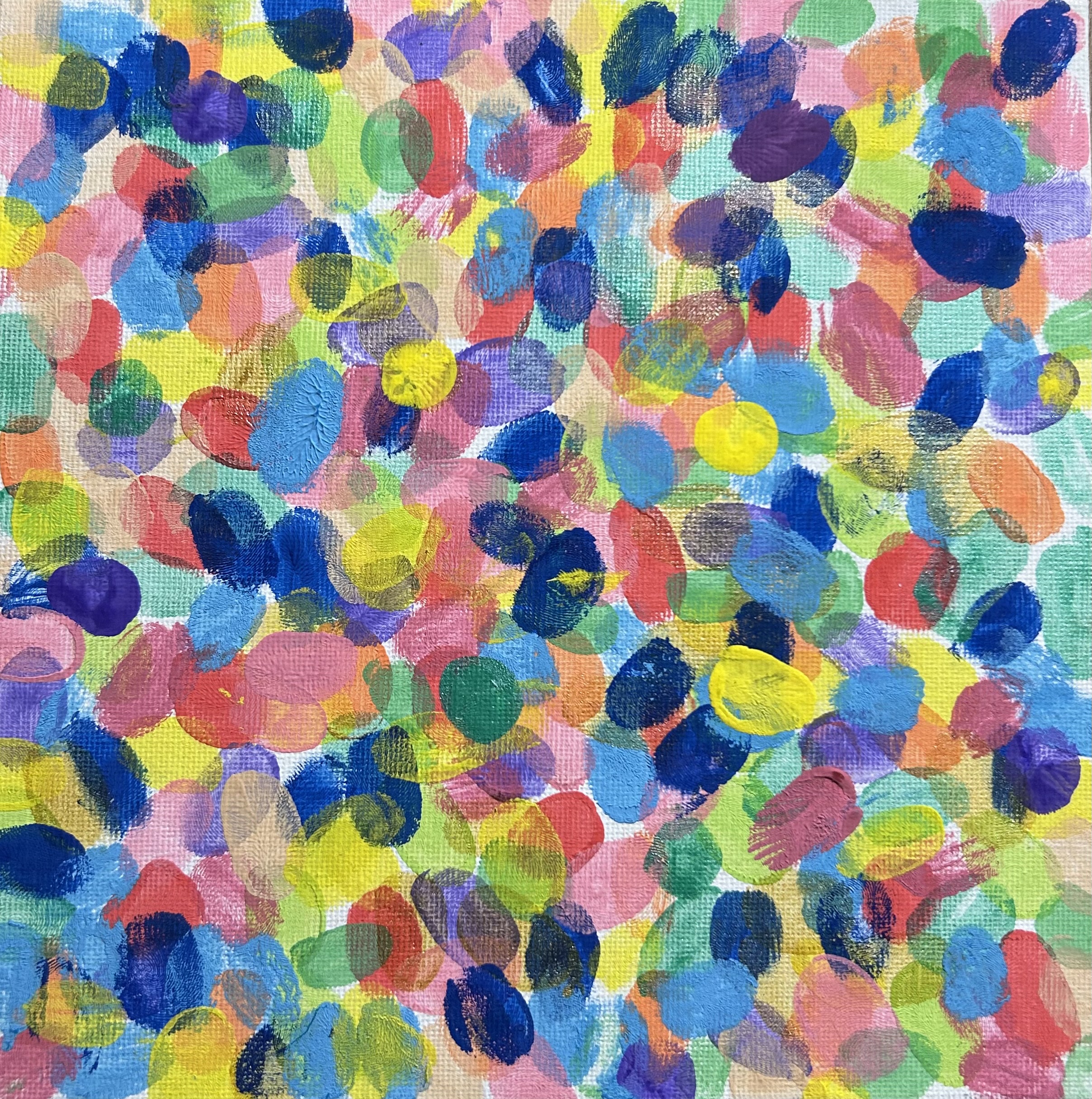 Frau Dr. de la Camp leitet die Grundschule Puchheim Süd. Sie schreibt zu ihrem Werk, bei dem die Schülerinnen und Schüler, sowie die Lehrkräfte ihre Fingerabdrücke hinterlassen haben: